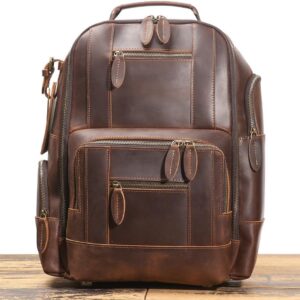 Alice Fan Vintage Genuine Leather 15.6″ Laptop Backpack For Men Cowhide Hiking Camping Rucksack Business Travel Daypacks