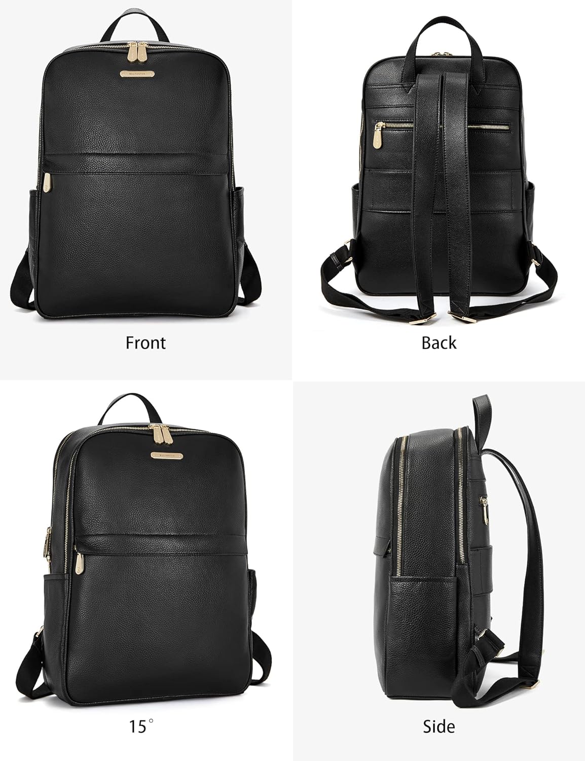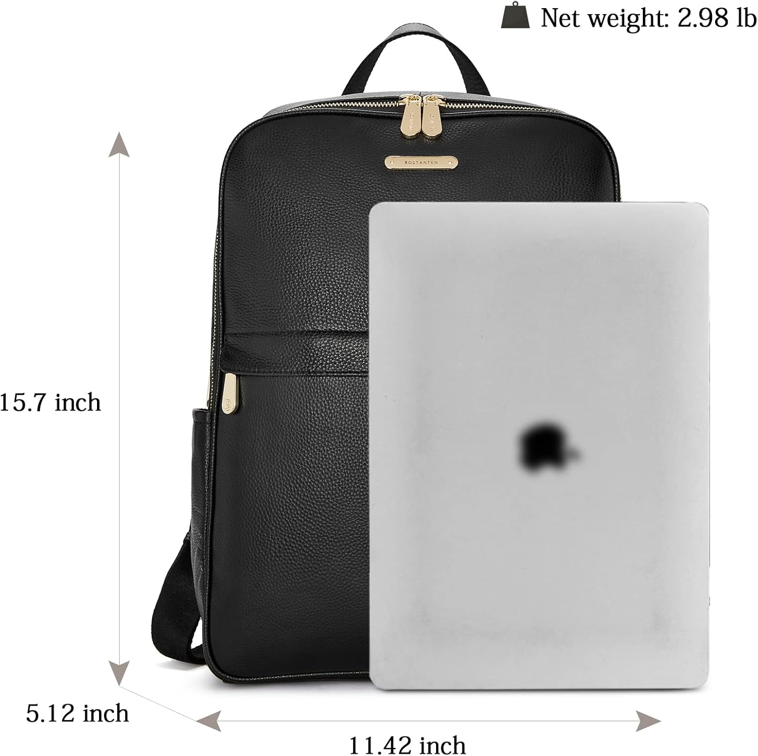 BOSTANTEN Genuine Leather 15.6 inch Laptop Backpack Purse for Women College Casual Backpack Travel Bag