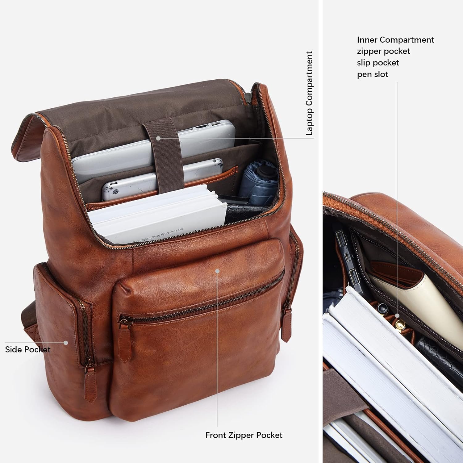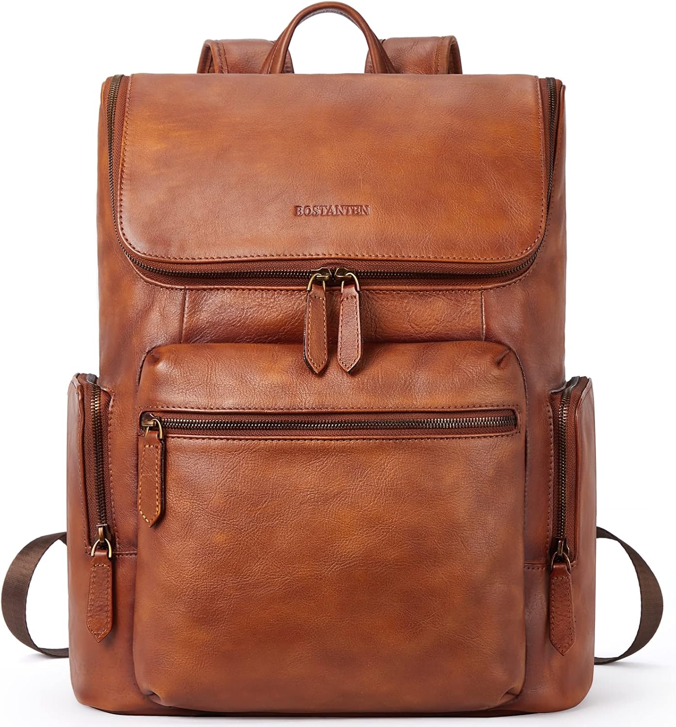 BOSTANTEN Leather Backpack for Men 15.6 inch Laptop Backpack Vintage Travel Office Bag Large Capacity Shoulder Bag Redbrown