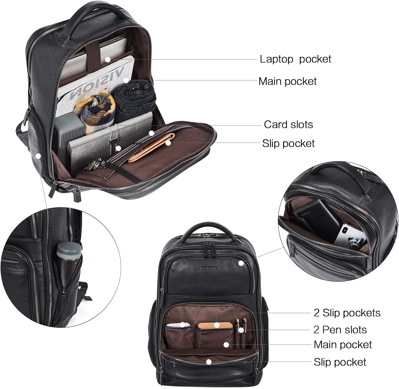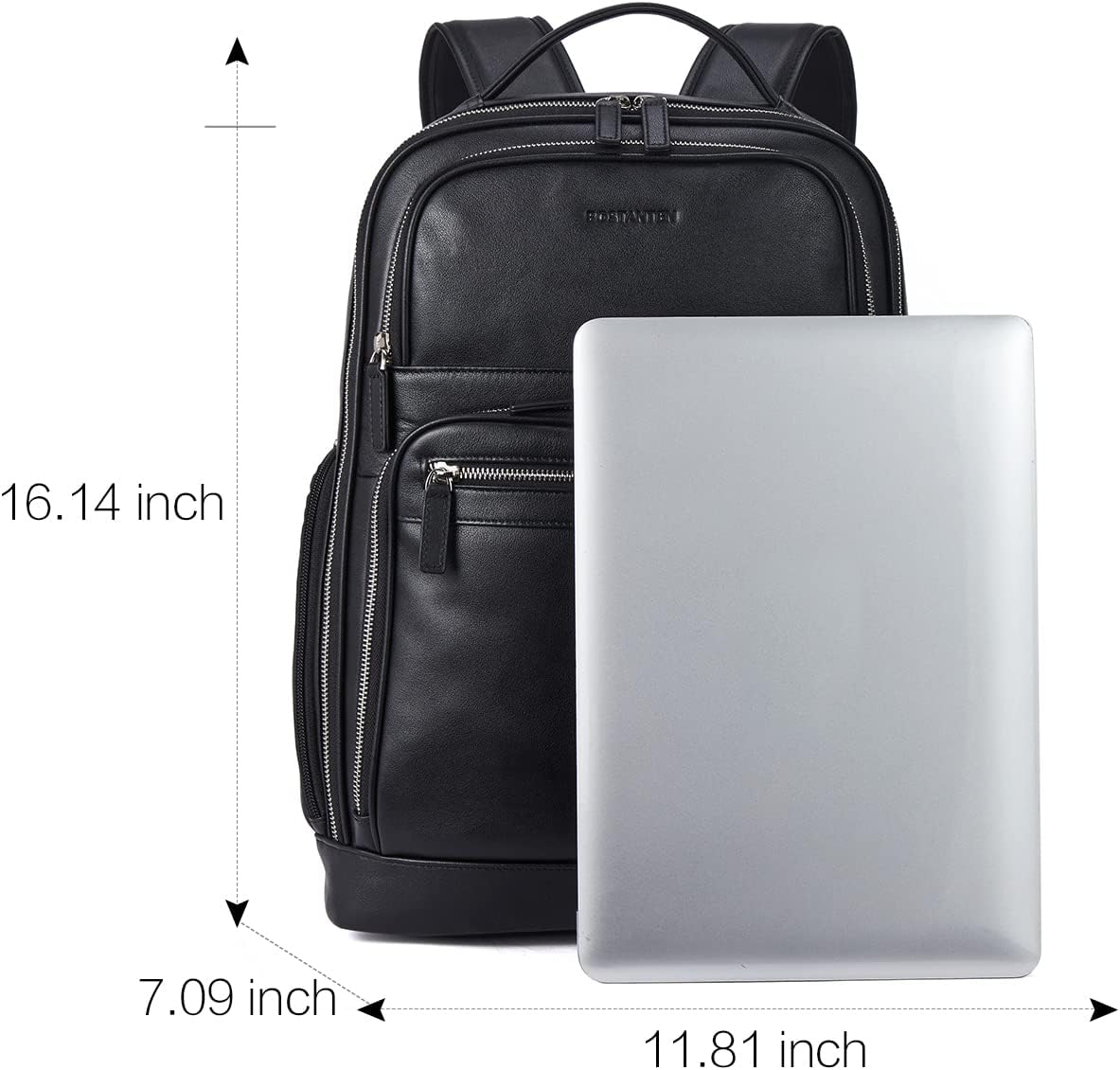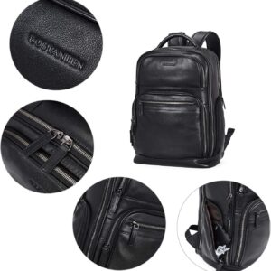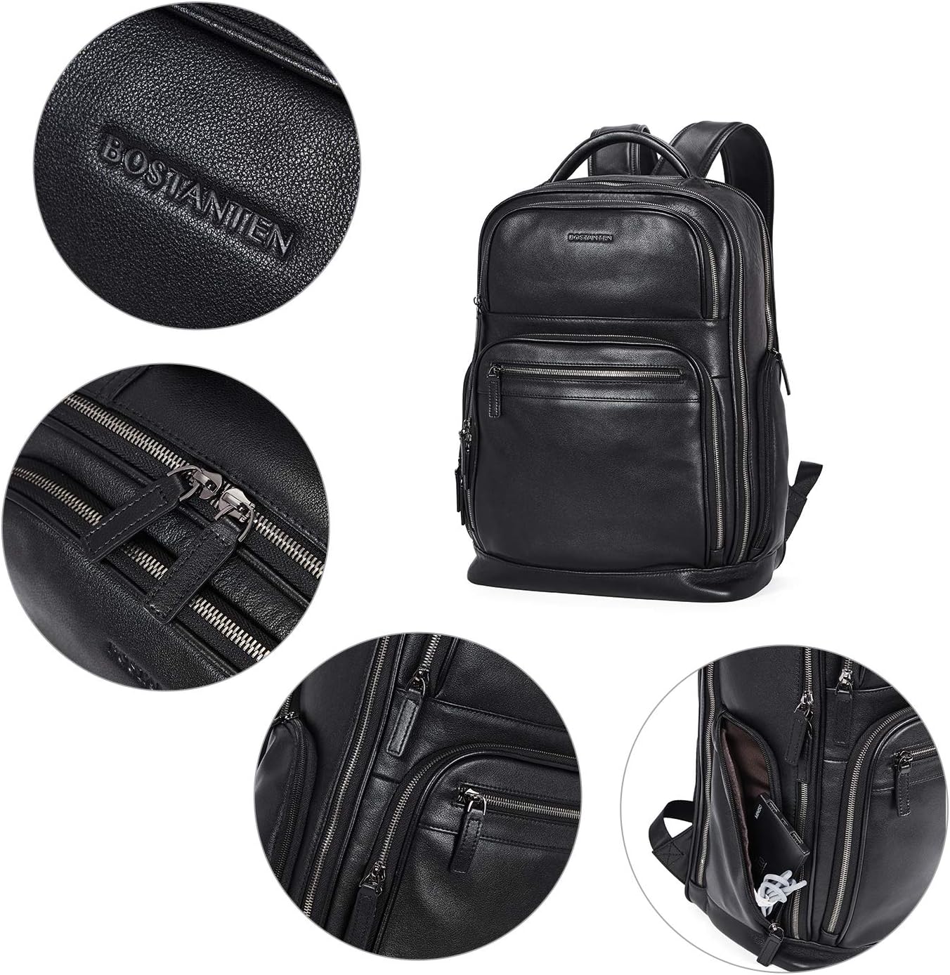 BOSTANTEN Leather Backpacks College 15.6\u201D Laptop Travel Computer Shoulder Backpack For Men Black