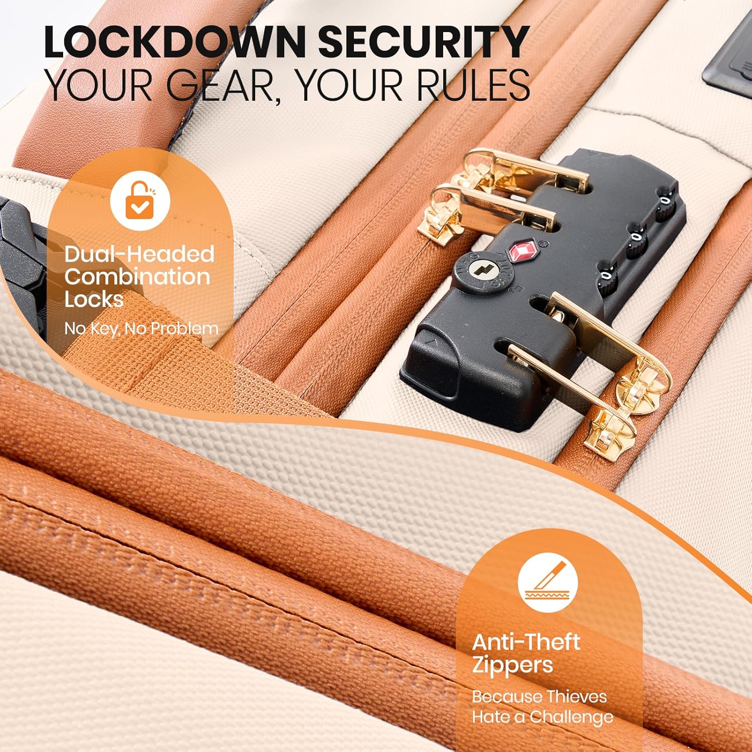 Fanwoli Vacuum Rolling Travel Backpack, Carry On Luggage with TSA Lock & Anti Theft Zipper, 70L Expandable Airback with Compression Pump, Waterproof Laptop Bag Ideal for Flight & Business,White