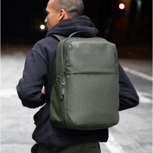 Inside the spacious main chamber a padded laptop compartment fits up to 16” MacBook plus a tablet pocket fits up to 12.9” iPad. On the outside, a travel pass-through easily secures your roller-suitcase while dual exterior water-bottle pockets add up to the perfect travel companions.