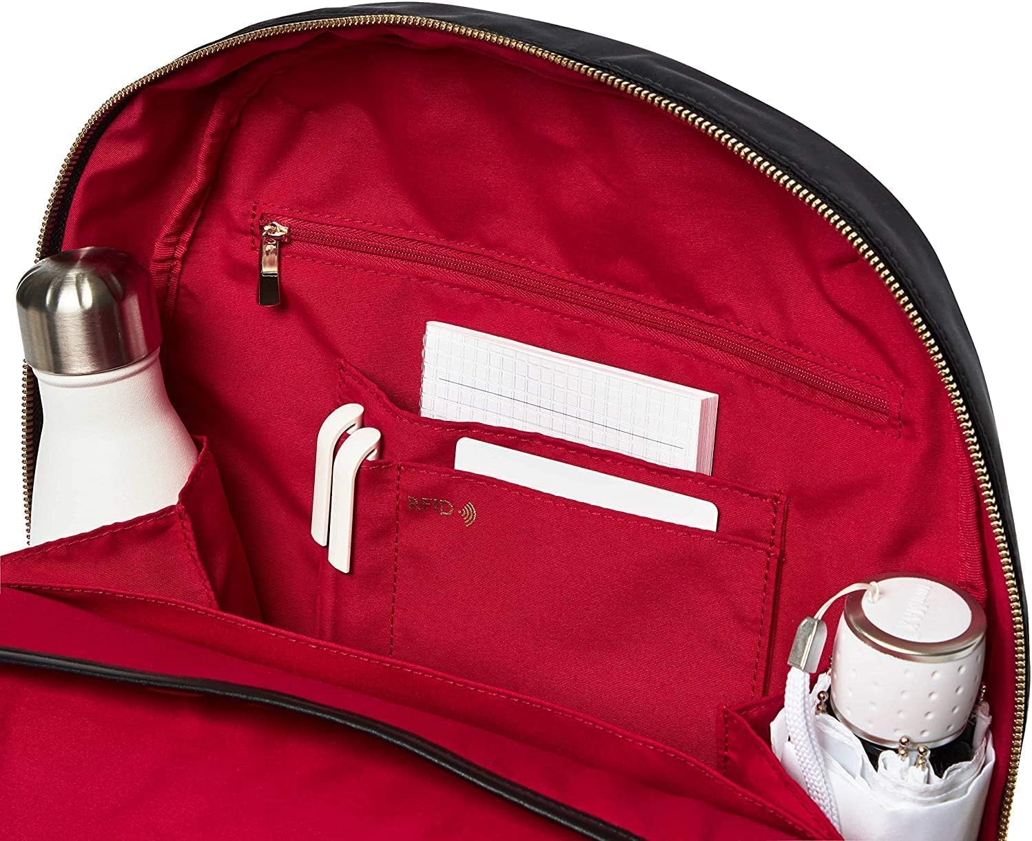 KNOMO Beauchamp Women’s 14″ Laptop Bag Computer Backpack Bookbag for Work, College, Travel Daypack Purse, Black, Golden Zip