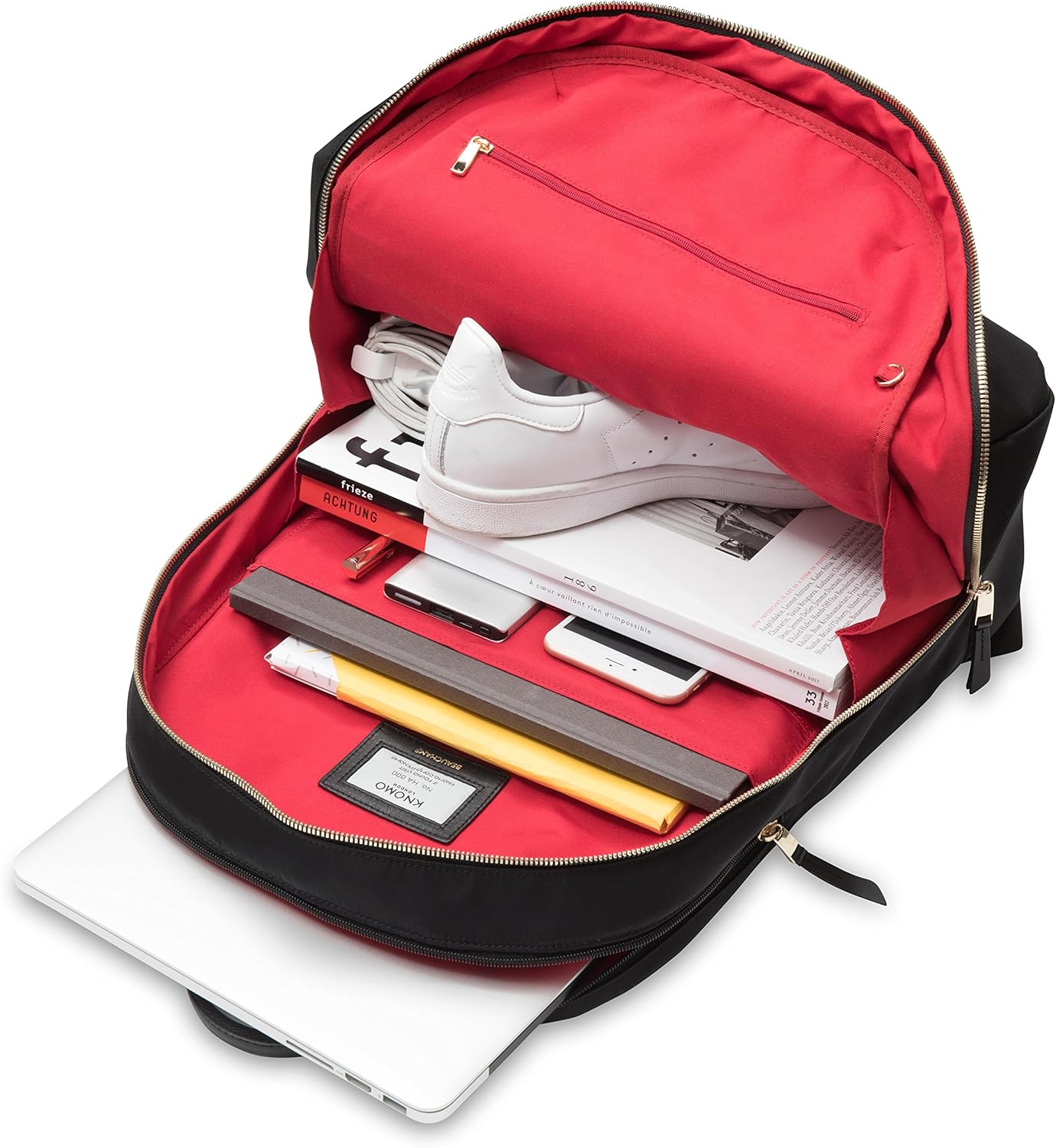 KNOMO Beaufort 15.6″ Laptop Backpack Work Bag Purse for Women Large Travel Rucksack with Golden Zip, Black
