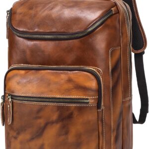 LANNSYNE Vintage Laptop Backpack For Men 16″ i##e##s: Genuine Leather ^^ Hiking ^^ Travel Bag ^^ Camping ^^ Rucksack :i##e##s