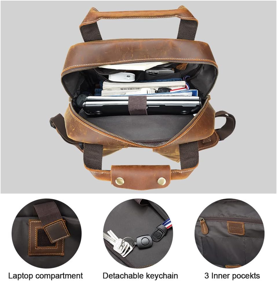 TIDING Men’s Vintage Genuine Leather Backpack 17 Inch Laptop Computer Bag Business Travel Rucksack Brown