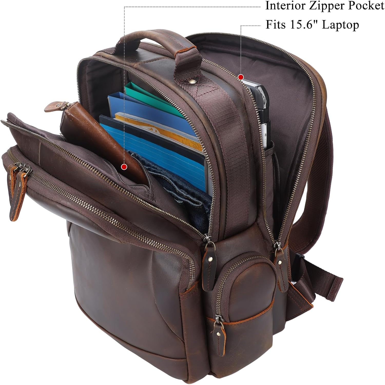 TIDING Vintage Laptop Backpack for Men 15.6 Inch i##e##s: Full Grain Leather ^^ Large Capacity ^^ Travel Rucksack ^^ Weekender ^^ Camping ^^ Daypacks :i##e##s