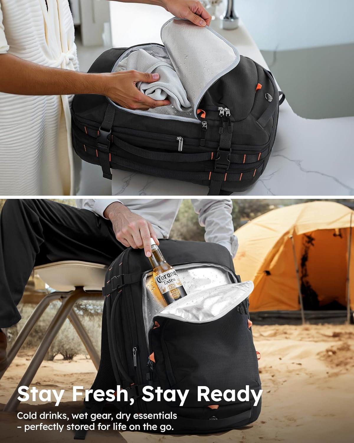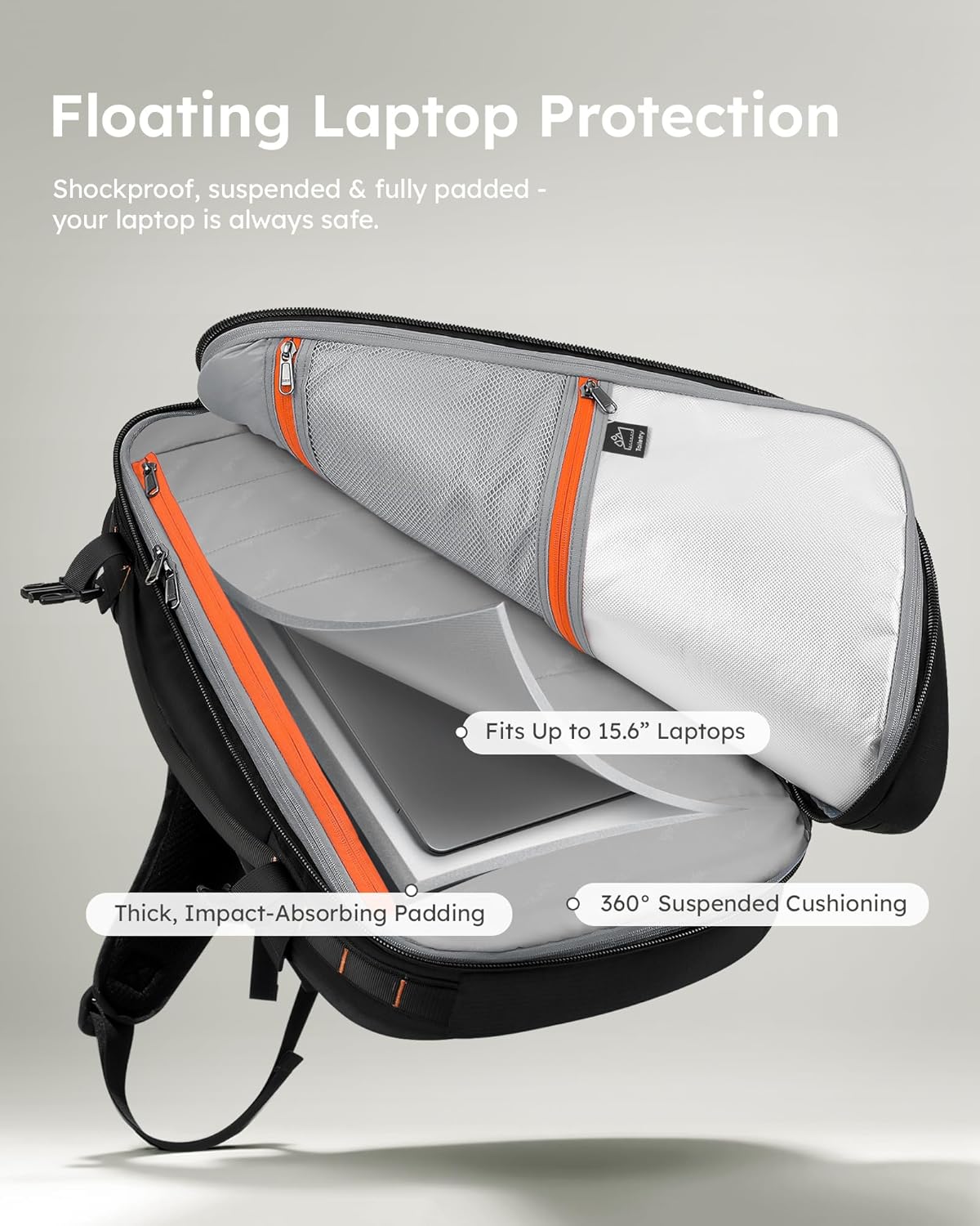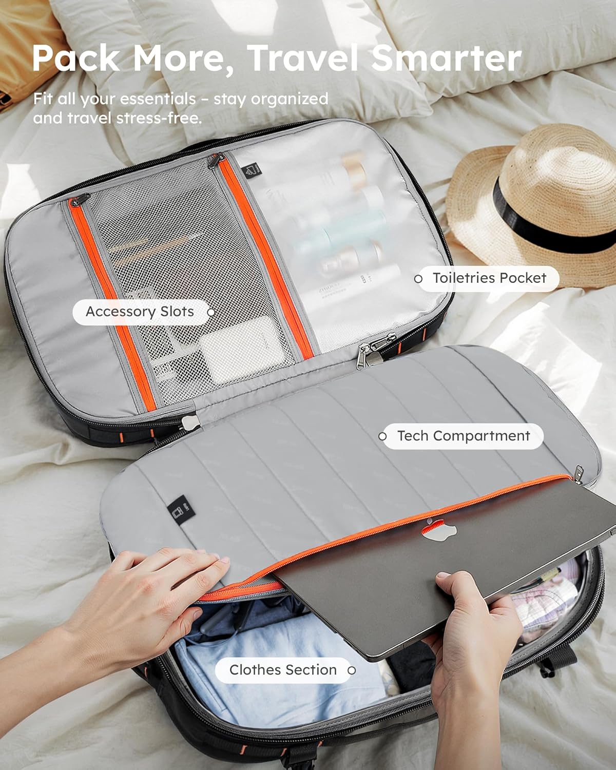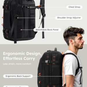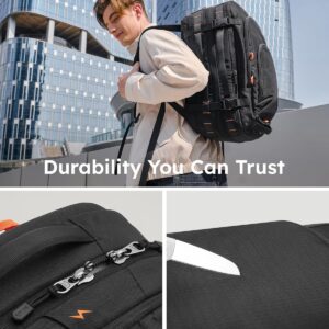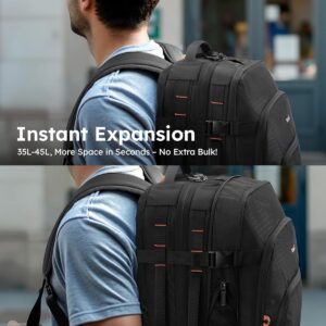 Tolaccea Travel Backpack, TSA Friendly Flight Approved Carry-on Luggage Water-resistant Business Rucksack, Durable Large Computer Bag Daypack Fits 15.6 Inch Laptop, 35-45L Expandable – Black