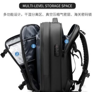 Special note: The vacuum referred to in this product is approximate vacuum, not absolute vacuum Experience the convenience of a versatile 60L backpack with vacuum compression technology. Its multi-compartment design offers easy storage and organization, while the inflatable pump allows effortless compression, making it equivalent to a 24-inch luggage. Ideal for travel, this backpack features a durable construction with adjustable straps for a comfortable fit. The dual-purpose air pump enables both suction and inflation, ensuring your belongings are securely packed. With its sleek design and practical features, this backpack is a must-have for your next adventure.
