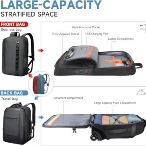 Travel Rolling Backpack,3 in 1 Carry on Backpack Flight Approved,Waterproof Personal Item Daypack with Detachable Backpack,Extra Luggage Backpack 55L for Work Teacher College,Black