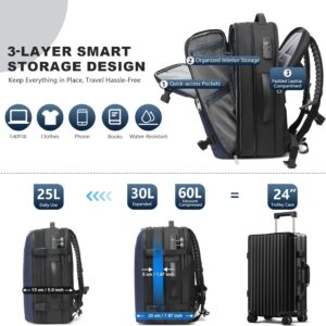 Vacuum Backpack Travel – 60L Expandable Carry-On Vacpack Backpack with Vacuum Pump, TSA Lock, Laptop Compartment, Water-Resistant Seal Compression Bag for Business & Flight Travel (Blue)