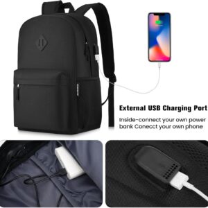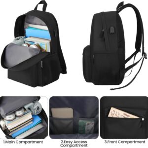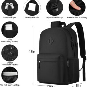 Unisex Black Backpack for School & Travel – Lightweight Laptop Backpack with USB Port Fits 15.6 Inch Notebook, Water Bottle Pocket – Ideal for Teens, College Students, Adults
